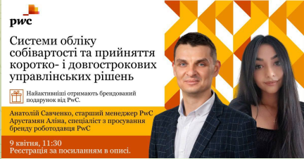 - Воркшоп від PwC Ukraine на тему "Системи обліку собівартості та прийняття коротко- і довгострокових управлінських рішень"