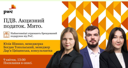 - Воркшоп від PwC Ukraine на тему "ПДВ. Акцизний податок. Мито"