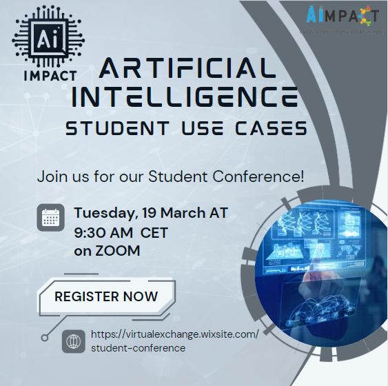 Запрошуємо здобувачів ОПП "Облік і аудит" зареєструватися та приєднатися до Першої міжнародної студентської онлайн конференції щодо впливу ШІ та випадків застосування різних інструментів ШІ в студентському житті ,яка відбудеться в онлайн форматі 19 березня 2024 року.