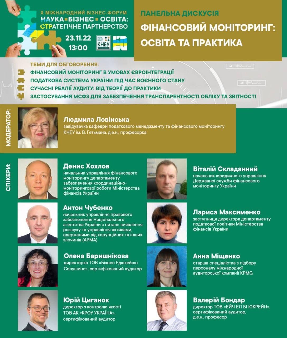 23.11.2022 об 13:00 долучайтесь до панельної дискусії ФІНАНСОВИЙ МОНІТОРИНГ: ОСВІТА ТА ПРАКТИКА